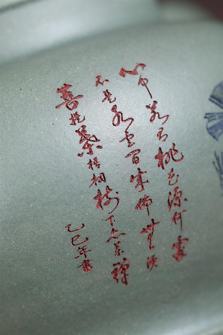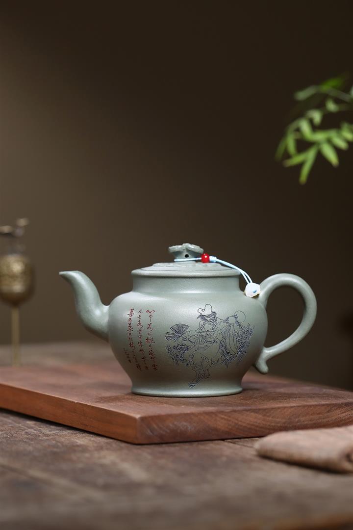 原礦天青泥純手工刻繪漢棠壺POT7301