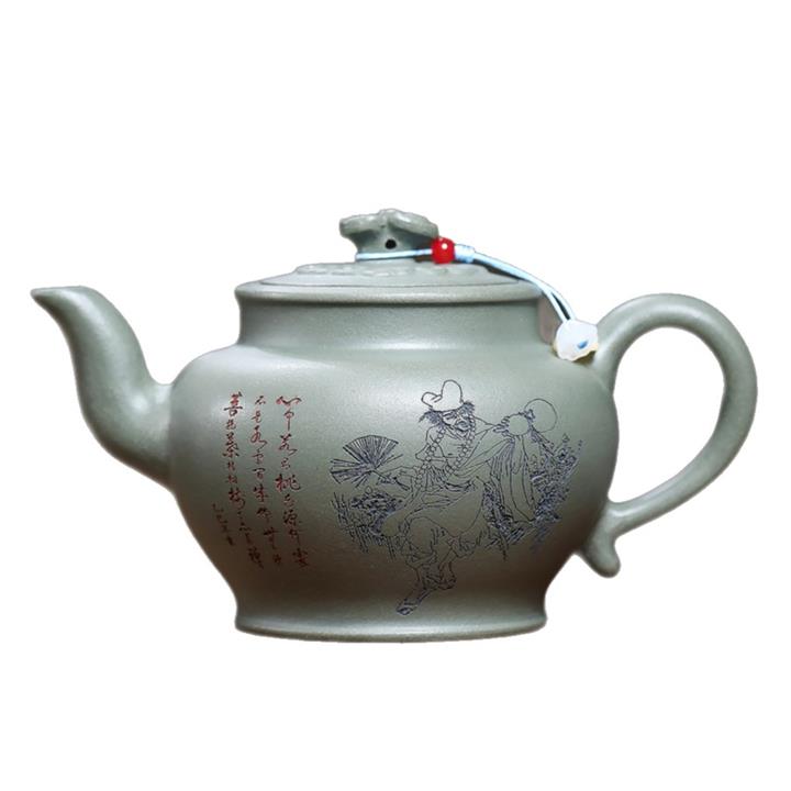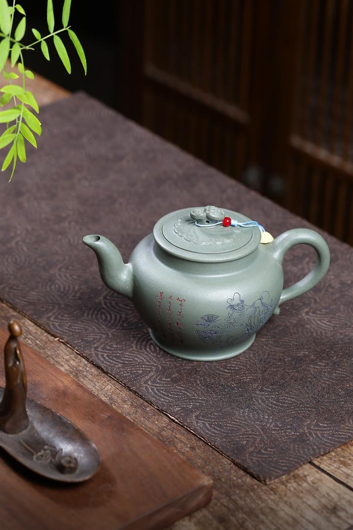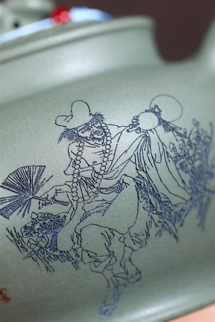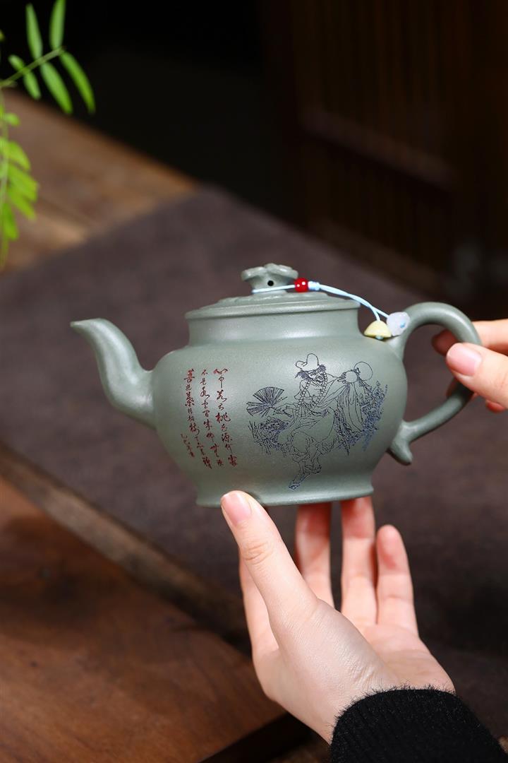 原礦墨綠泥描金銀湖石東亭茶壺POT7303