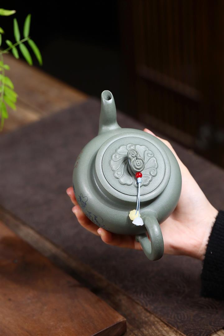 420cc原礦豆青砂泥醉櫻禪影笑櫻泡茶壺POT9894
