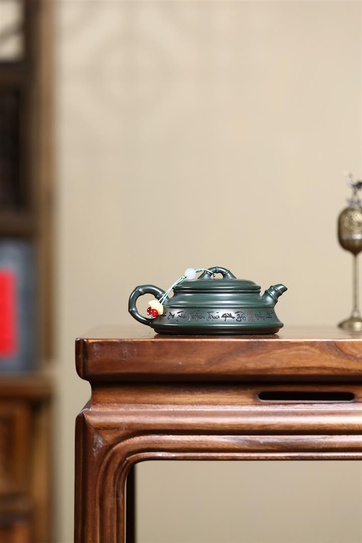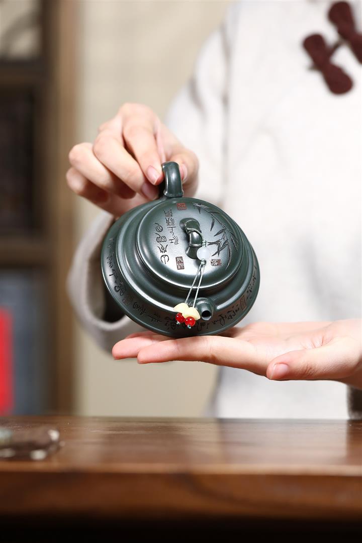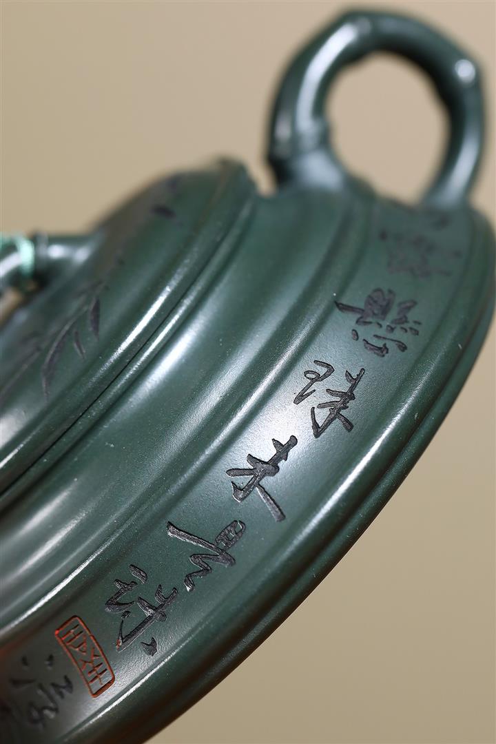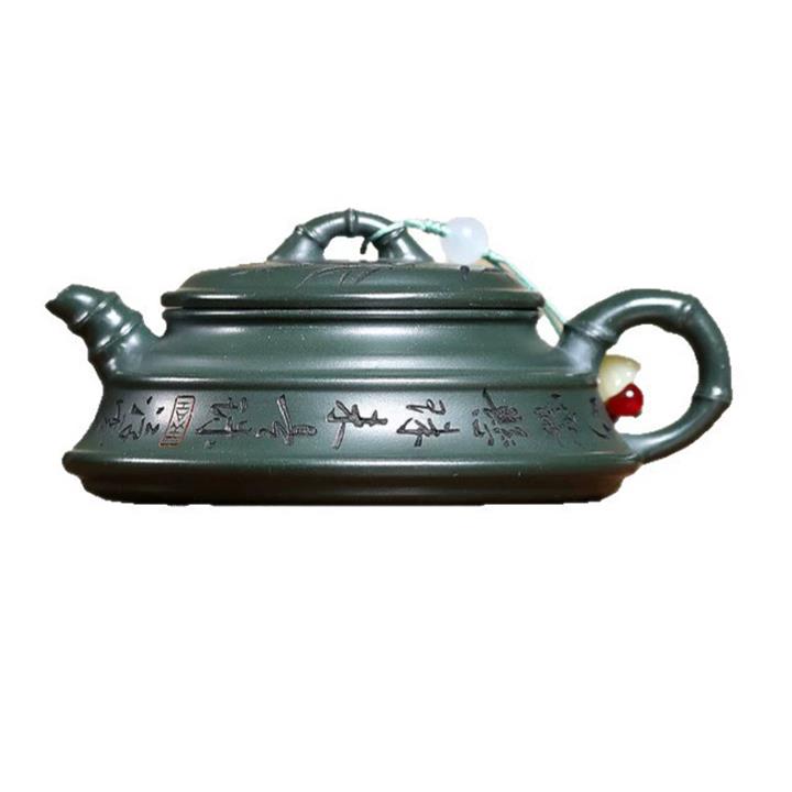 130cc原礦翡翠綠泥雙線竹段泡茶壺POT9932