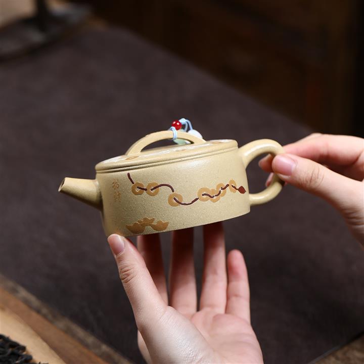 【作品介紹】此款壺形線條流暢,壺把,壺嘴,壺身壹氣呵成栩栩如生,是收藏把玩的好壺,泥料色澤古樸典雅,日久使用,漸露鋒芒,養成變化快,溫潤莊重,用其泡茶,使用的年代久,壺身就溫潤,泡出來的茶湯也就醇郁芳馨。