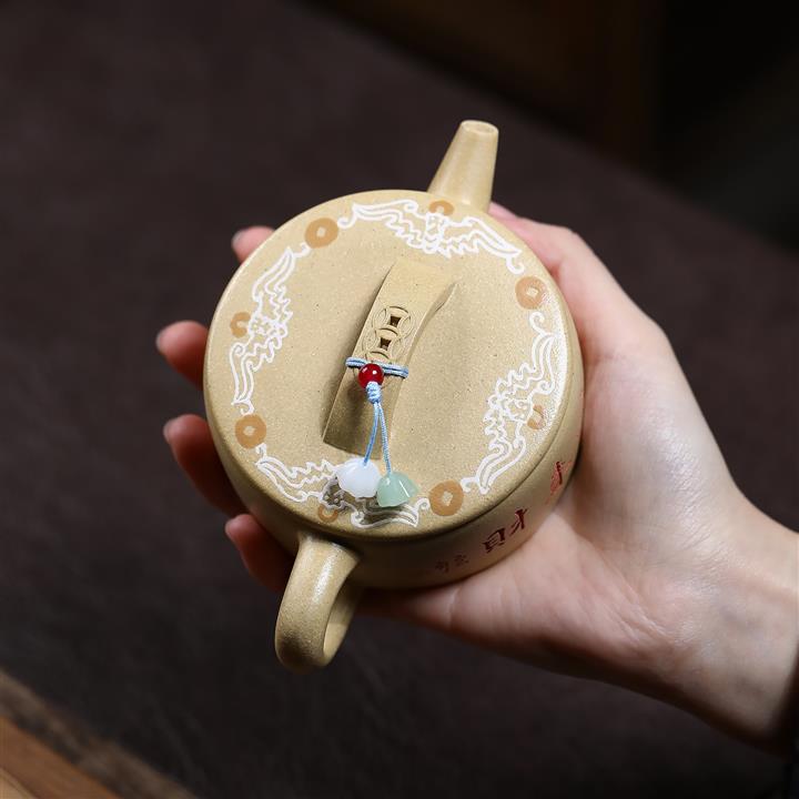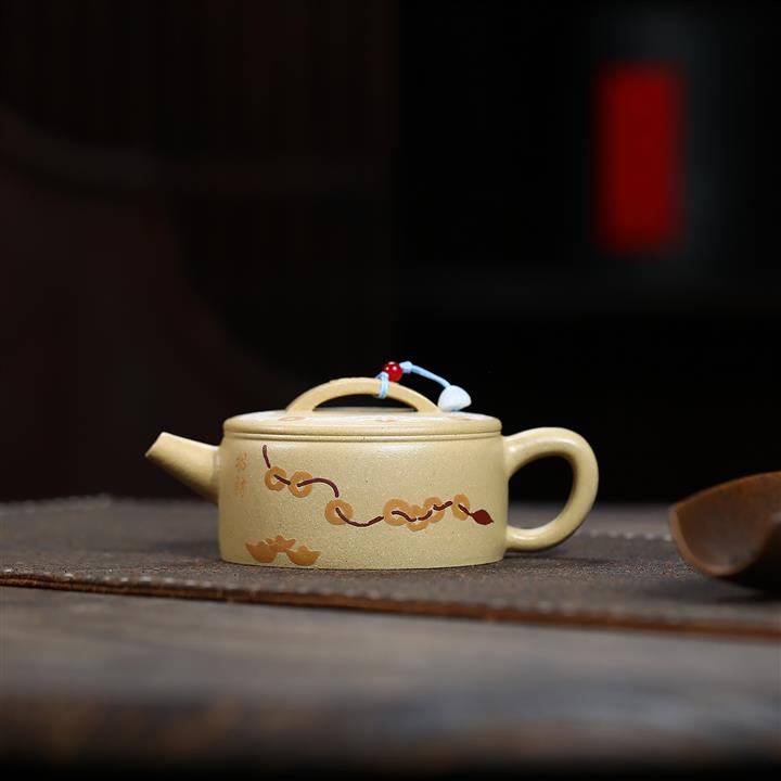 180cc原礦龍血砂/黃金朱泥荷趣漢瓦泡茶壺POT9806