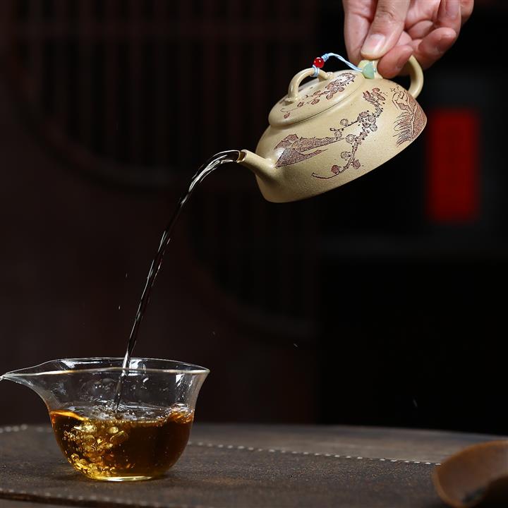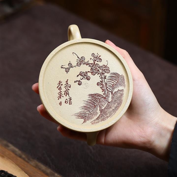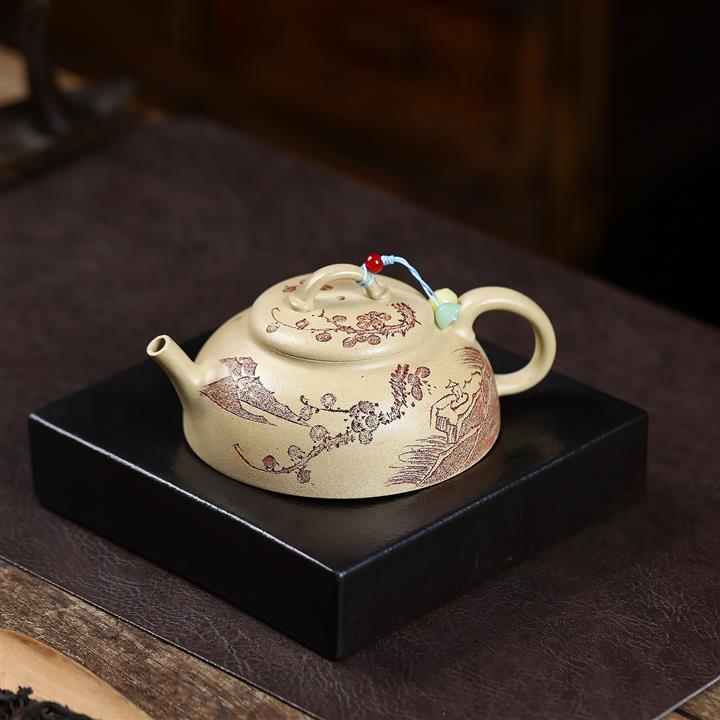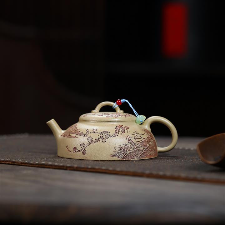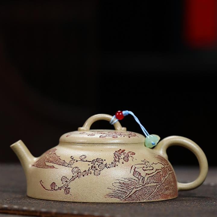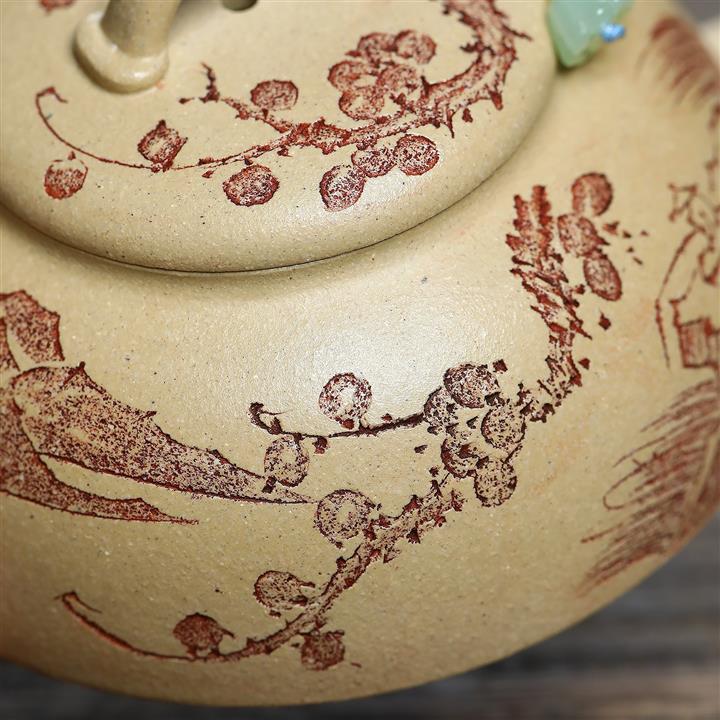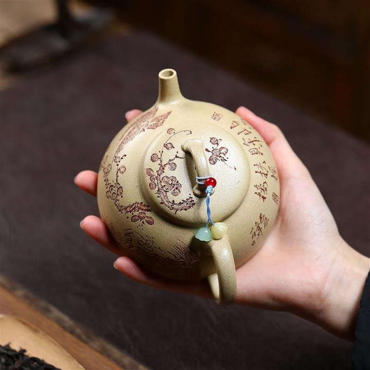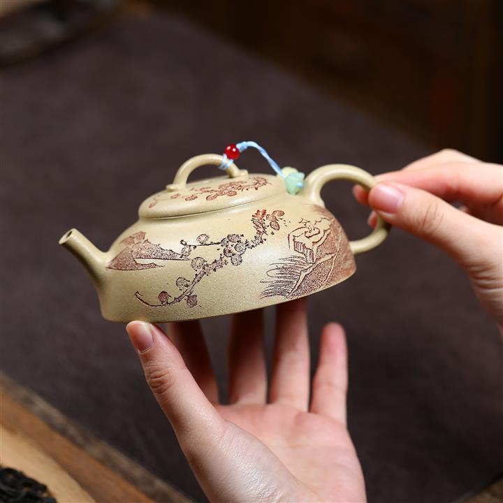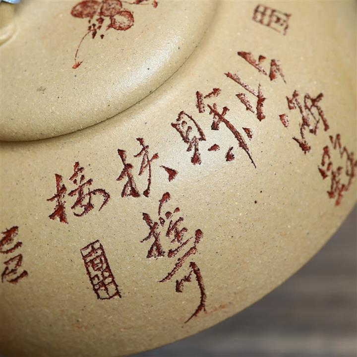 手工刻繪祥雲紫砂壺本山段泥雲錦壺POT4197