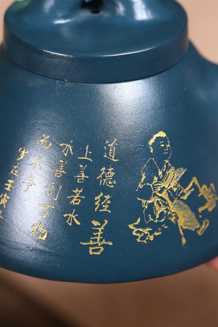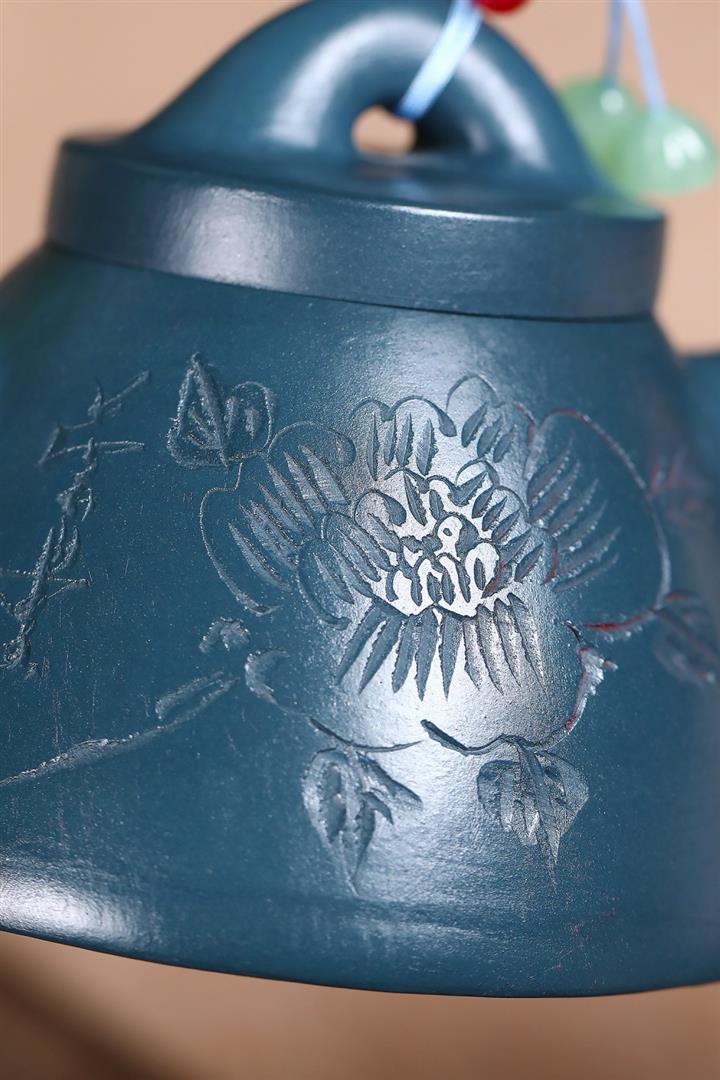 原礦綠泥手工刻繪竹影秦權炮嘴茶壺POT6751