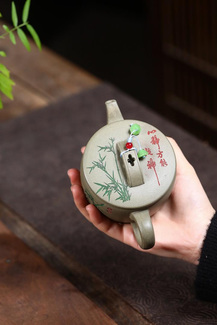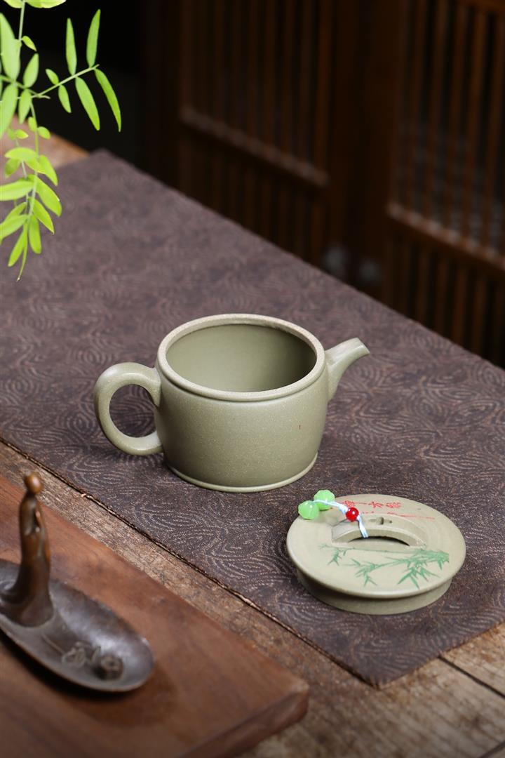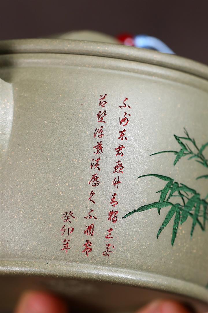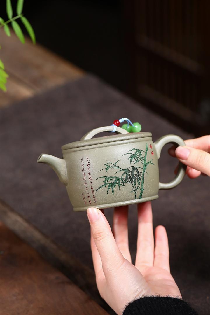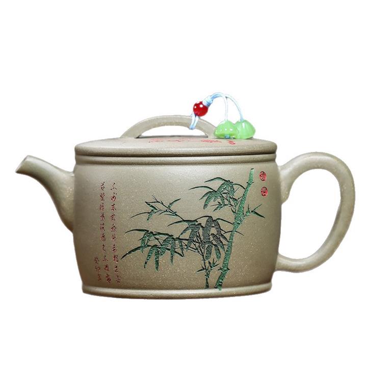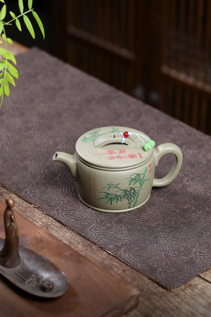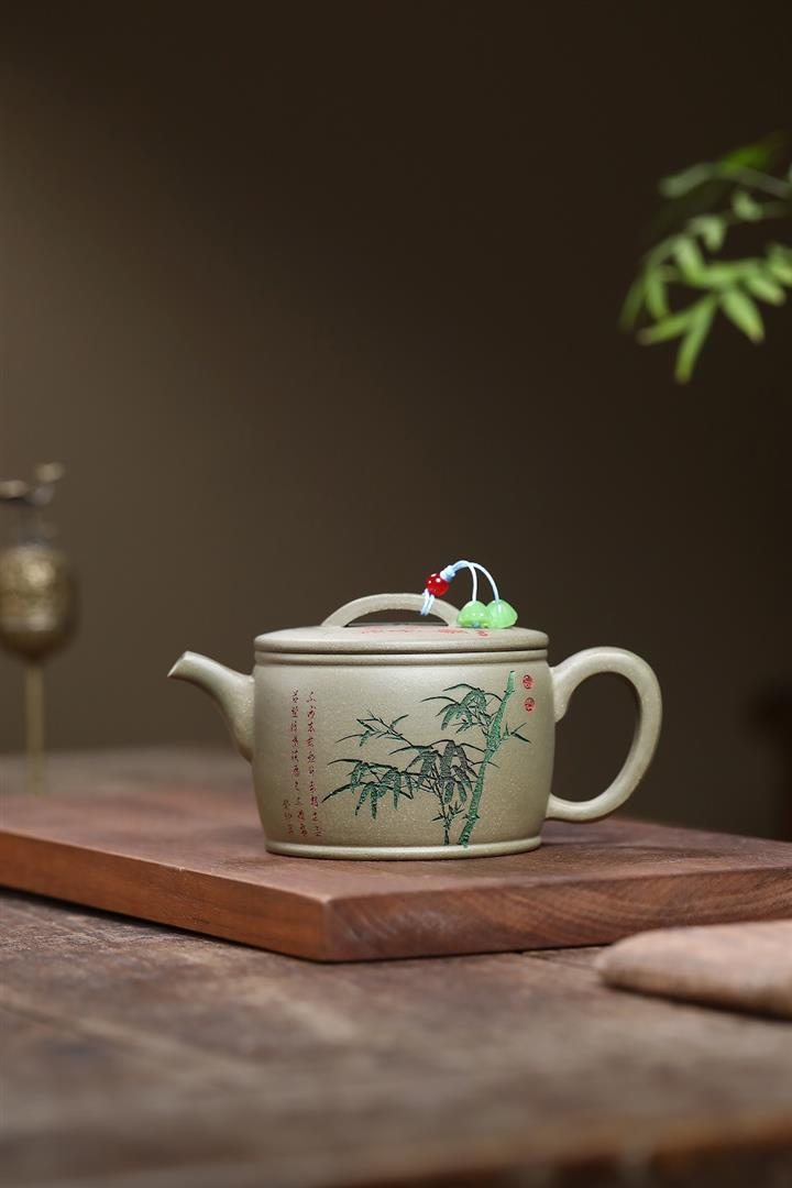 280cc原礦綠泥滿刻竹林松濤秦權茶壺POT8552