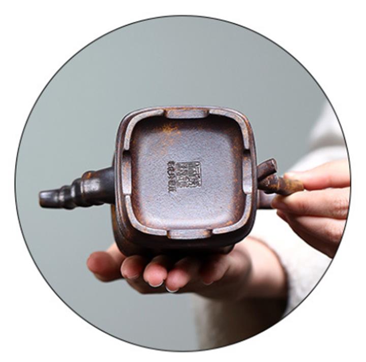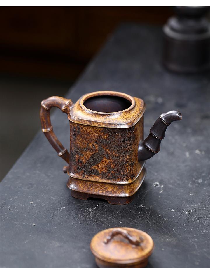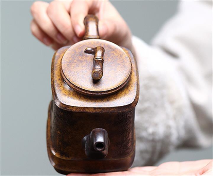 240cc古龍窯柴燒龍骨金砂四方刻竹泡茶壺POT9631