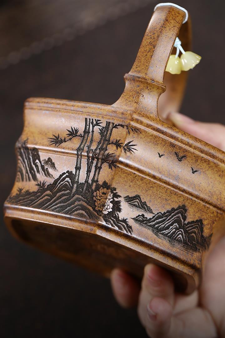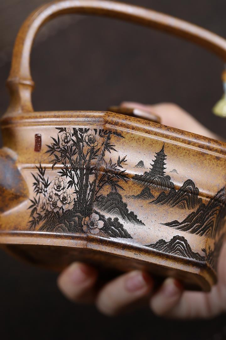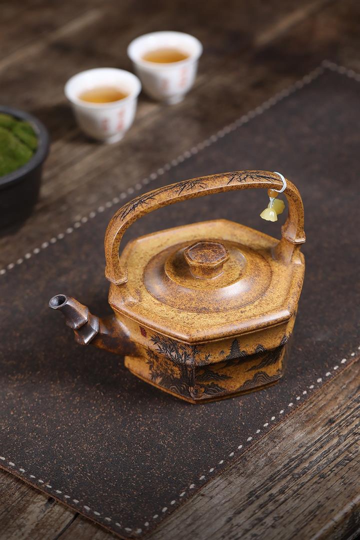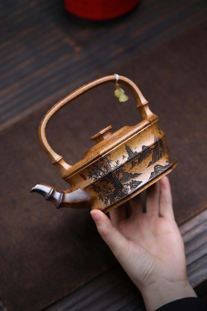 350cc原礦龍骨金砂山水提梁茶壺POT10012