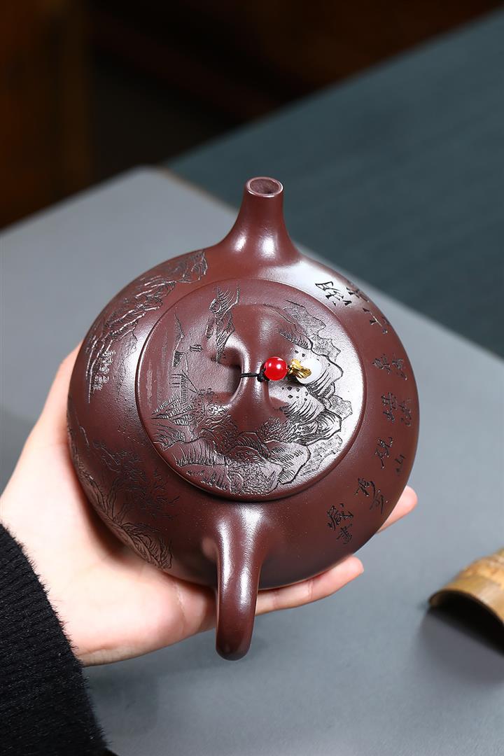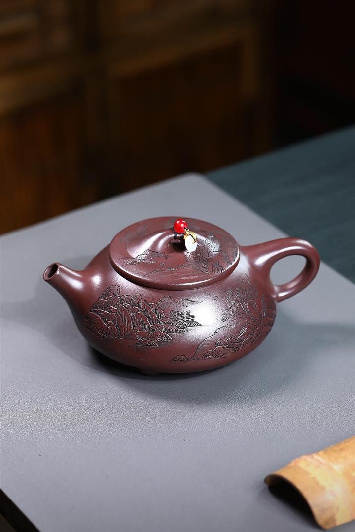 紫朱泥周盤紫砂壺POT5676