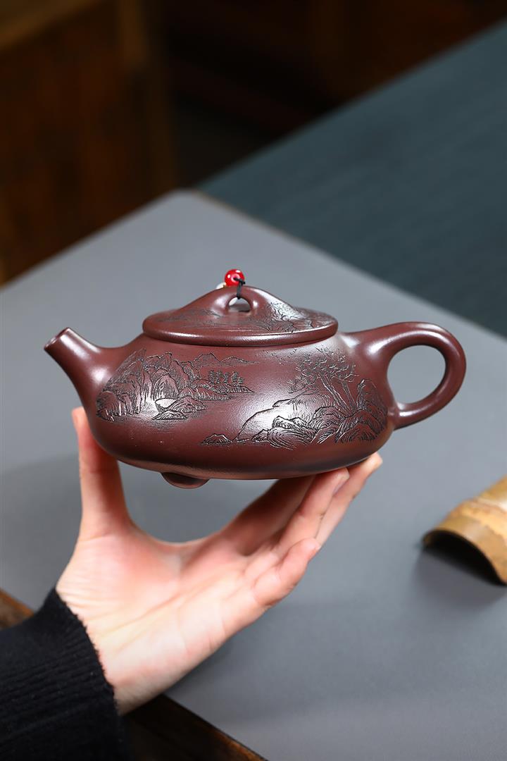 460cc原礦紫泥山水石瓢泡茶壺POT10014