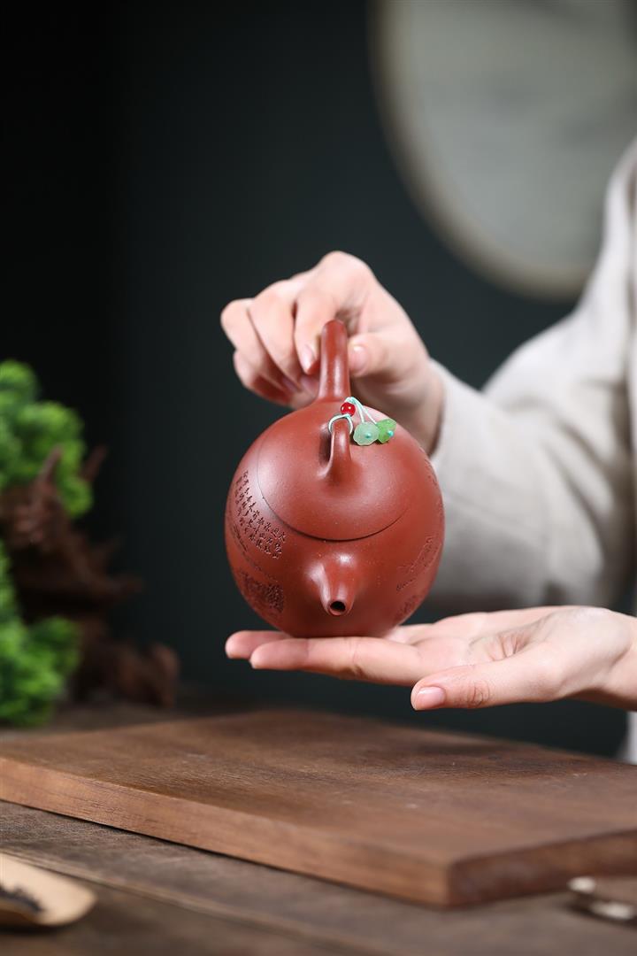 【泥料特點】砂土氣重,似淳實農民,日久使用,漸露鋒芒,養成變化,溫潤莊重。紫砂是壹種雙重氣孔結構的多孔性材質,氣孔微細,密度高。用紫砂壺沏茶,不失原味,且香不渙散,得茶之真香真味。紫砂使用越久,壺身色澤越發光亮照人,氣韻溫雅。紫砂壺長久使用器身會因撫摸擦拭,變得越發溫潤光澤。