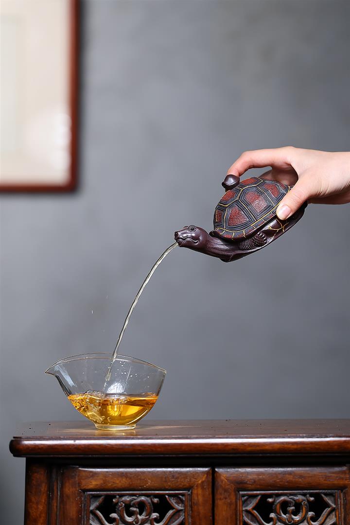 【泥料特點】砂土氣重,似淳實農民,日久使用,漸露鋒芒,養成變化,溫潤莊重。紫砂是壹種雙重氣孔結構的多孔性材質,氣孔微細,密度高。用紫砂壺沏茶,不失原味,且香不渙散,得茶之真香真味。紫砂使用越久,壺身色澤越發光亮照人,氣韻溫雅。紫砂壺長久使用器身會因撫摸擦拭,變得越發溫潤光澤。