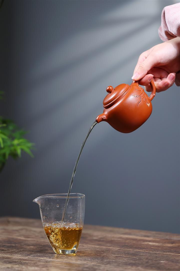 【作品介紹】此款壺形線條流暢,壺把,壺嘴,壺身壹氣呵成栩栩如生,是收藏把玩的好壺,泥料色澤古樸典雅,日久使用,漸露鋒芒,養成變化快,溫潤莊重,用其泡茶,使用的年代久,壺身就溫潤,泡出來的茶湯也就醇郁芳馨。