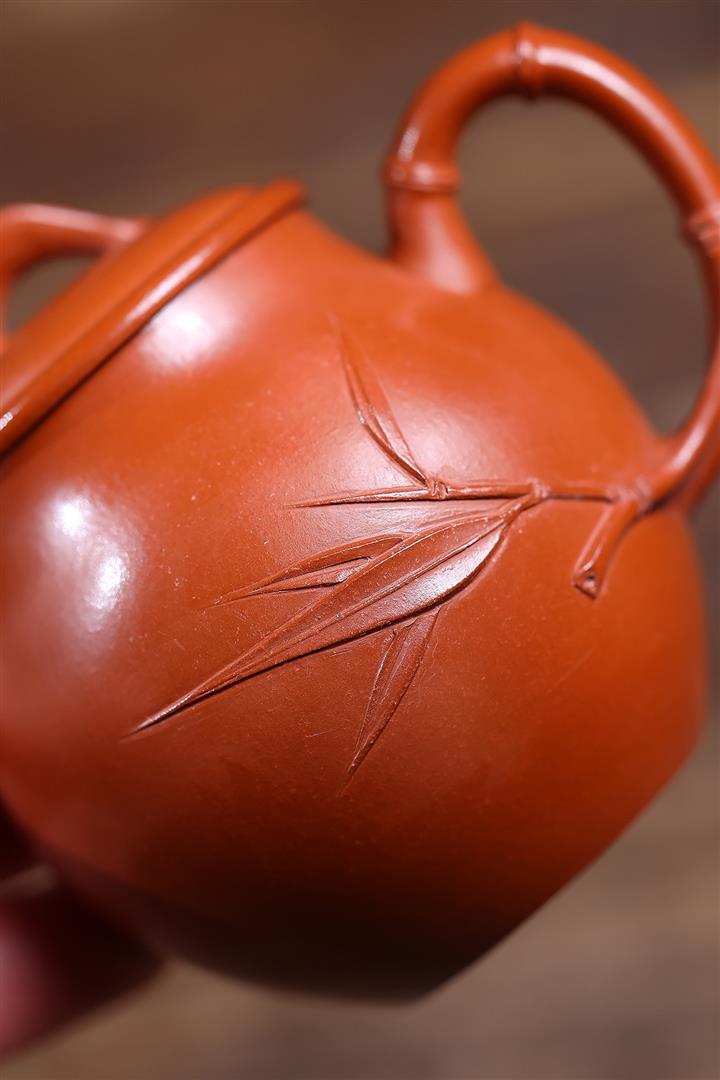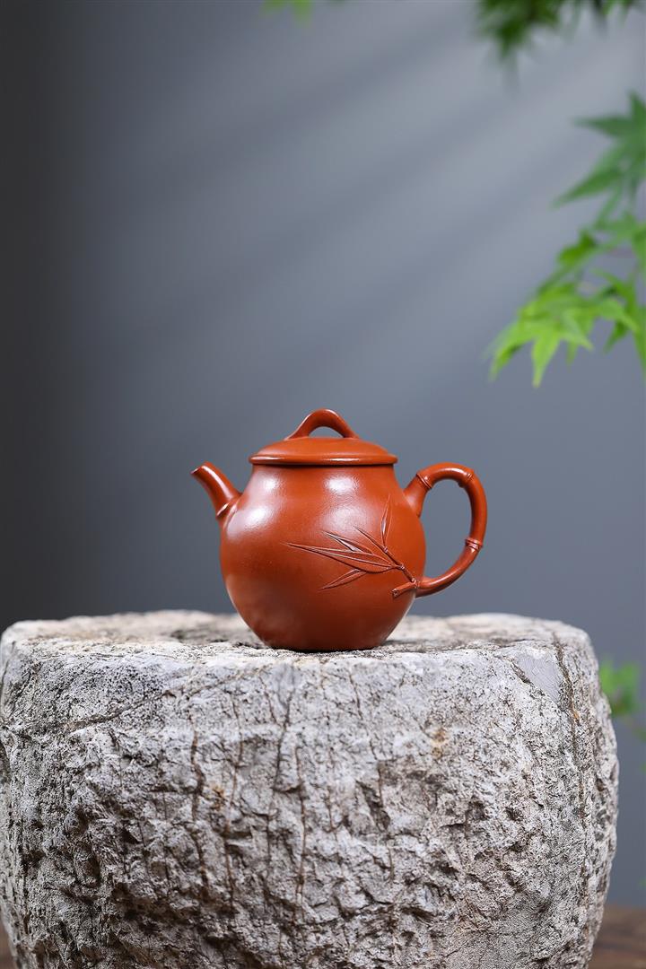 220cc原礦大紅袍雙色雙線竹鼓茶壺POT8865