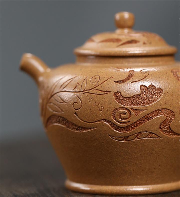 【作品介紹】此款壺形線條流暢,壺把,壺嘴,壺身壹氣呵成栩栩如生,是收藏把玩的好壺,泥料色澤古樸典雅,日久使用,漸露鋒芒,養成變化快,溫潤莊重,用其泡茶,使用的年代久,壺身就溫潤,泡出來的茶湯也就醇郁芳馨。