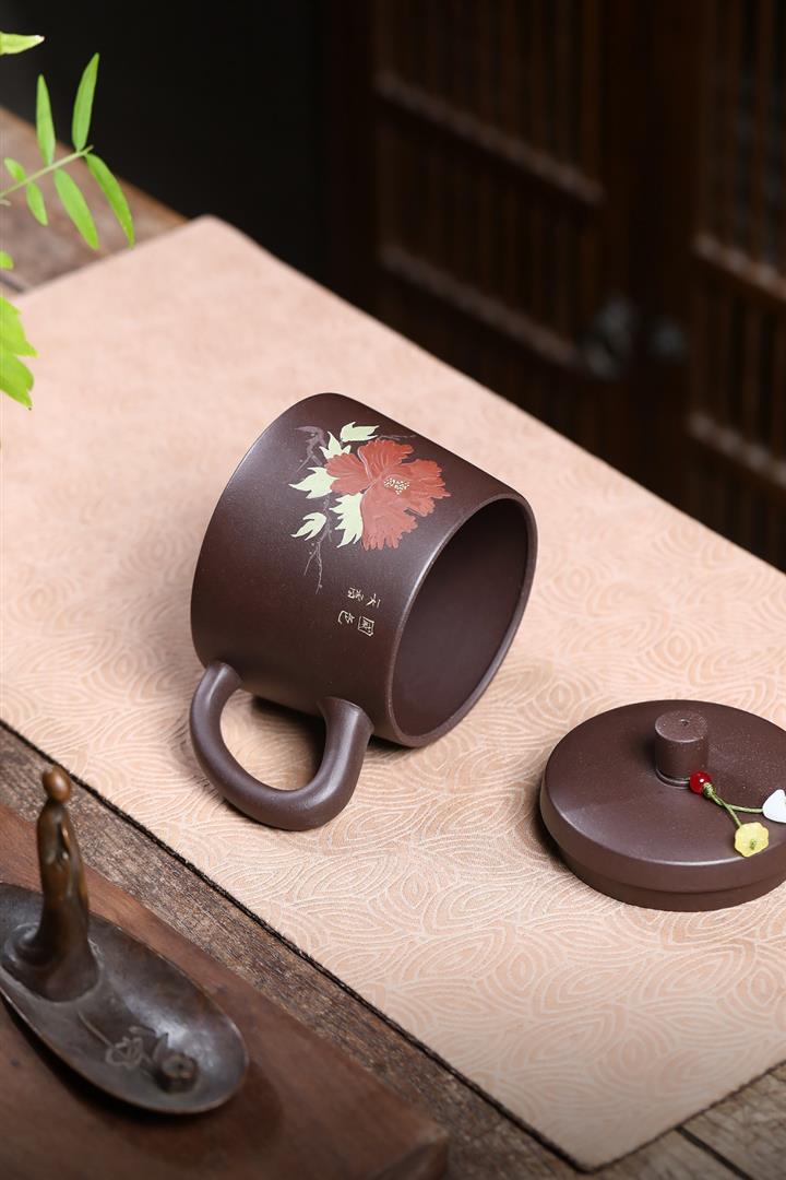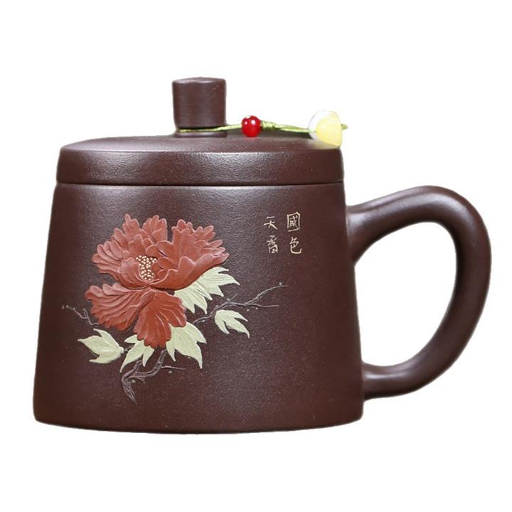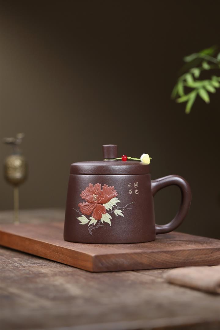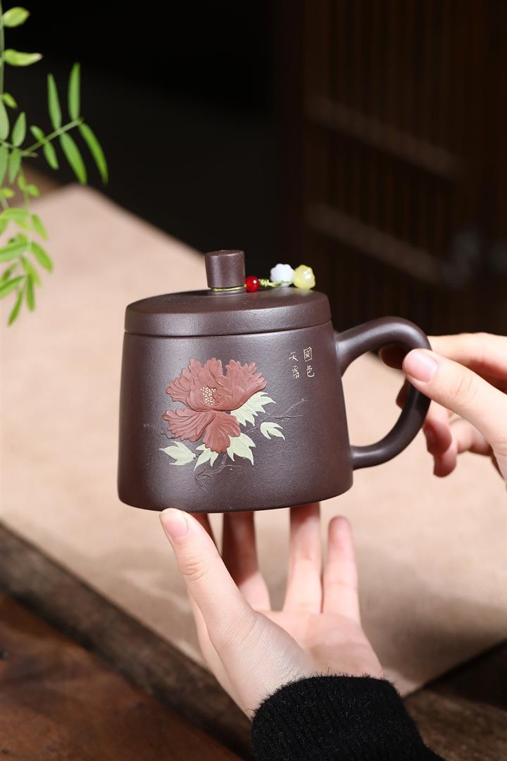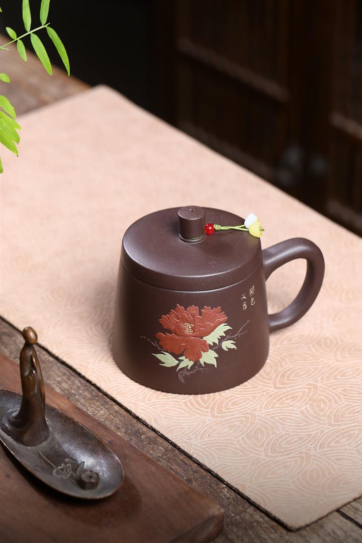 350cc原礦紫泥牡丹蓋杯茶杯POT10078