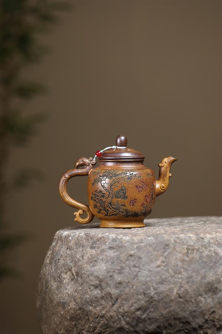 250cc原礦高溫柴燒龍骨金砂大展宏圖文旦茶壺POT9112