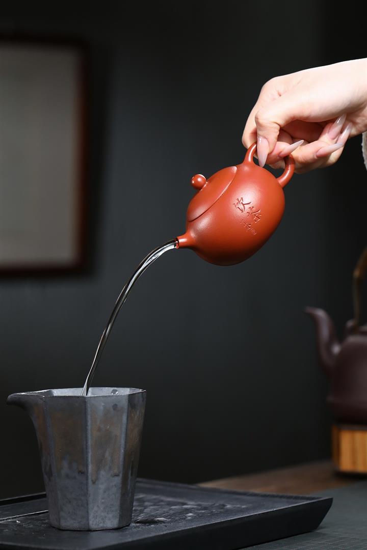 原礦朱泥全手工筋紋如意茶壺POT6667