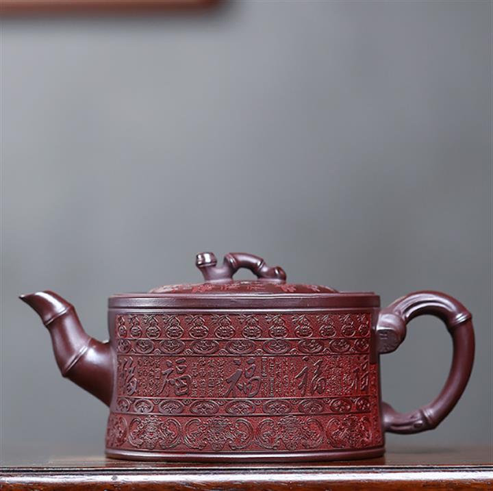 480cc原礦石紅泥百福竹節泡茶壺POT10029