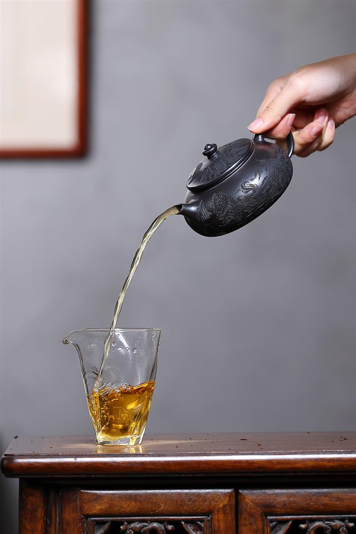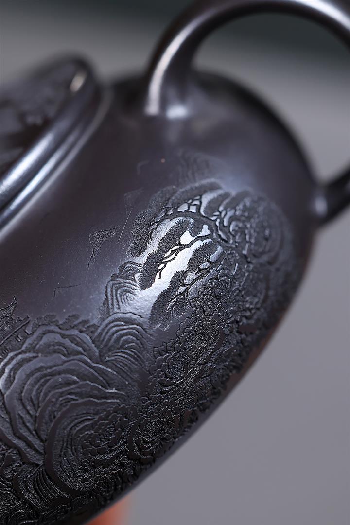 大紅袍還原燒松針壺紫砂壺POT5536
