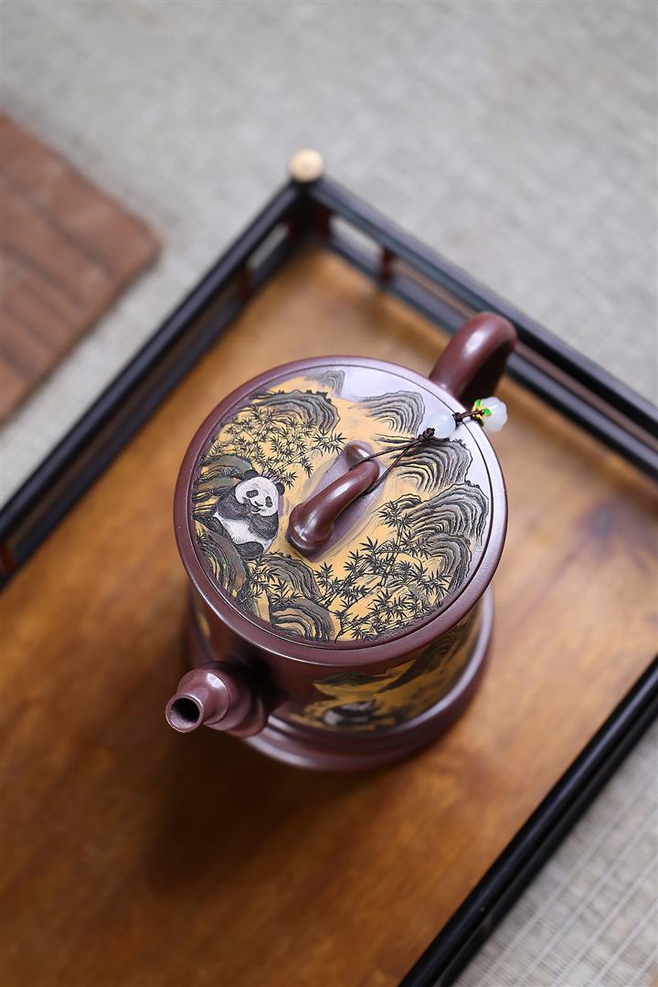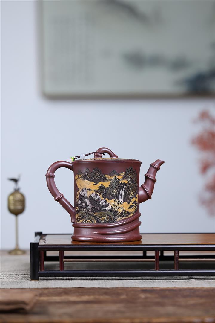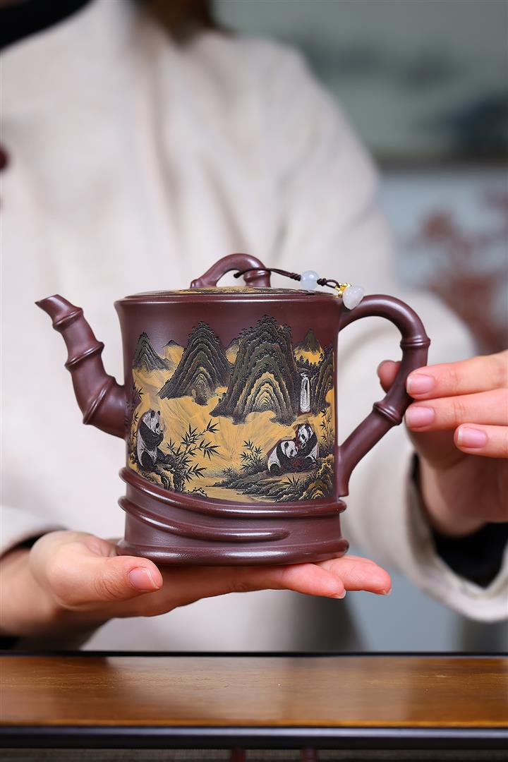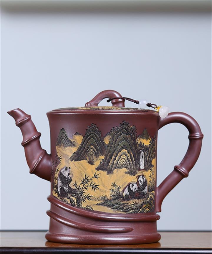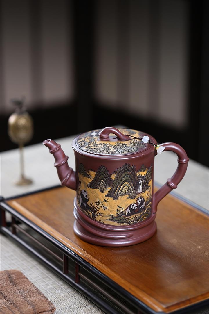 370cc原礦紫泥高竹節熊貓竹段泡茶壺POT10139