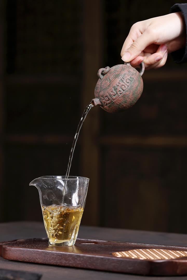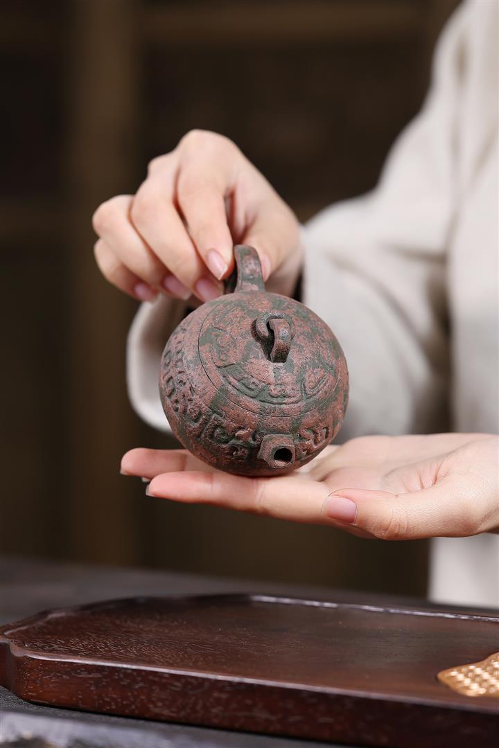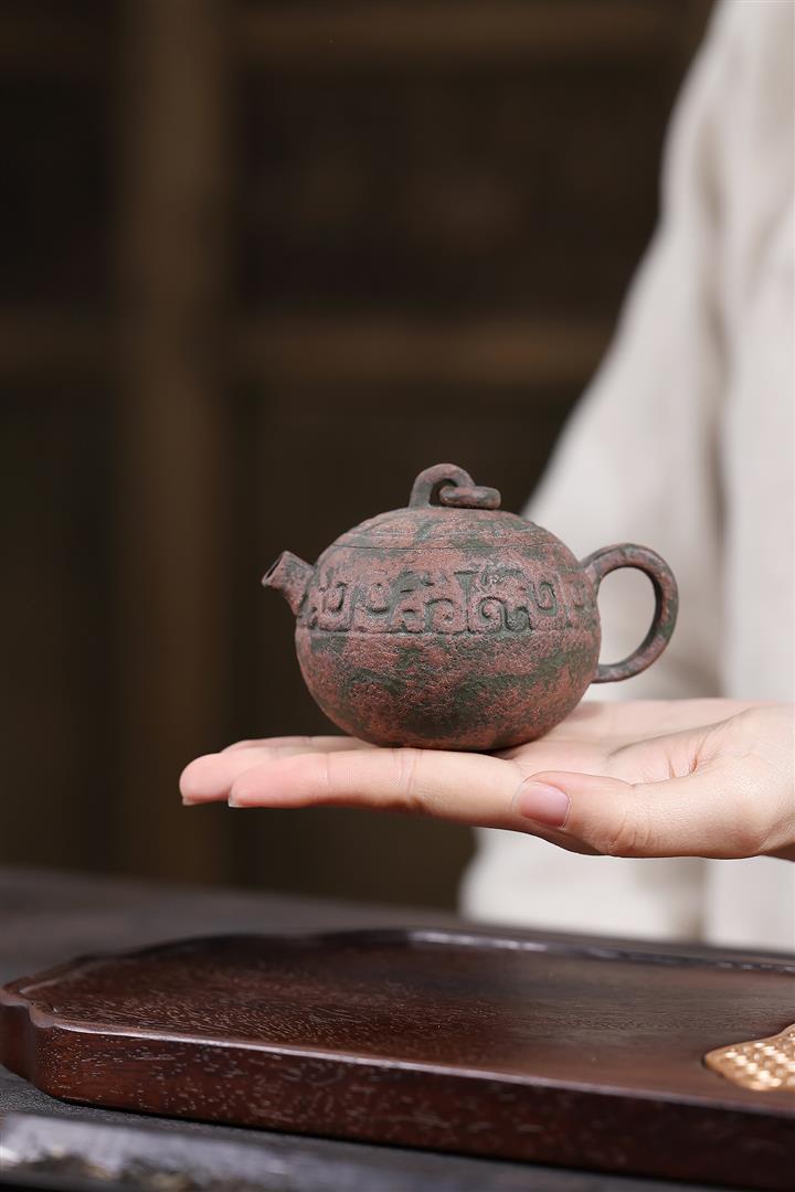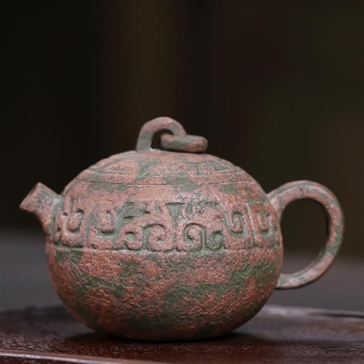 550cc原礦鐵血紅砂花好月圓漢瓦泡茶壺POT9496