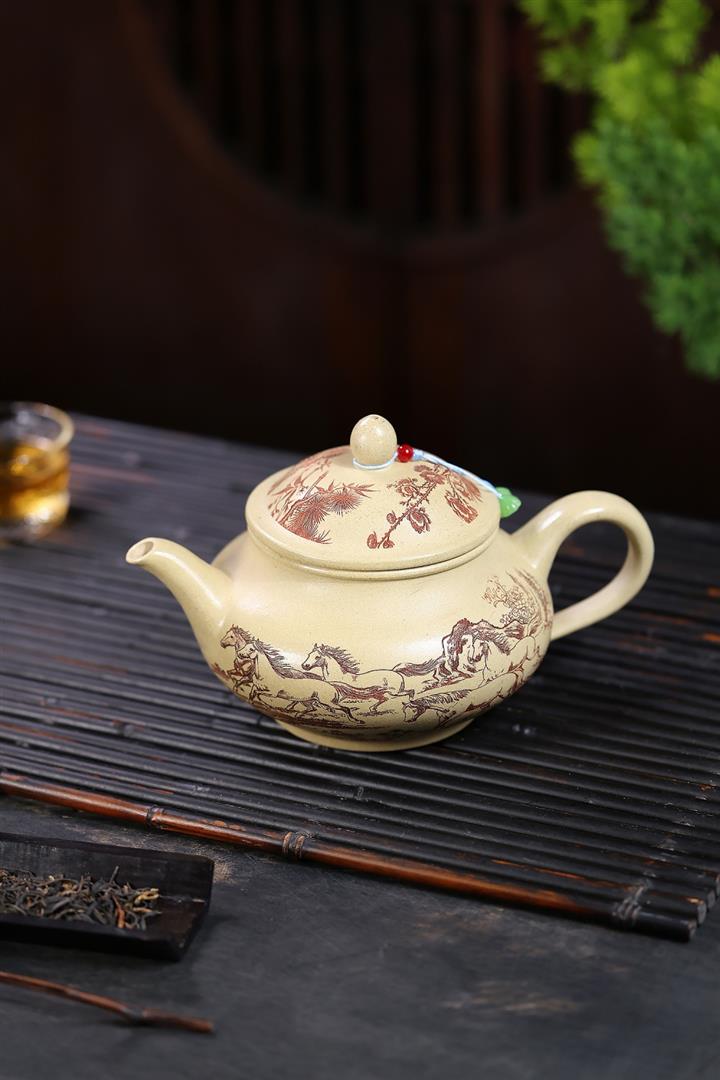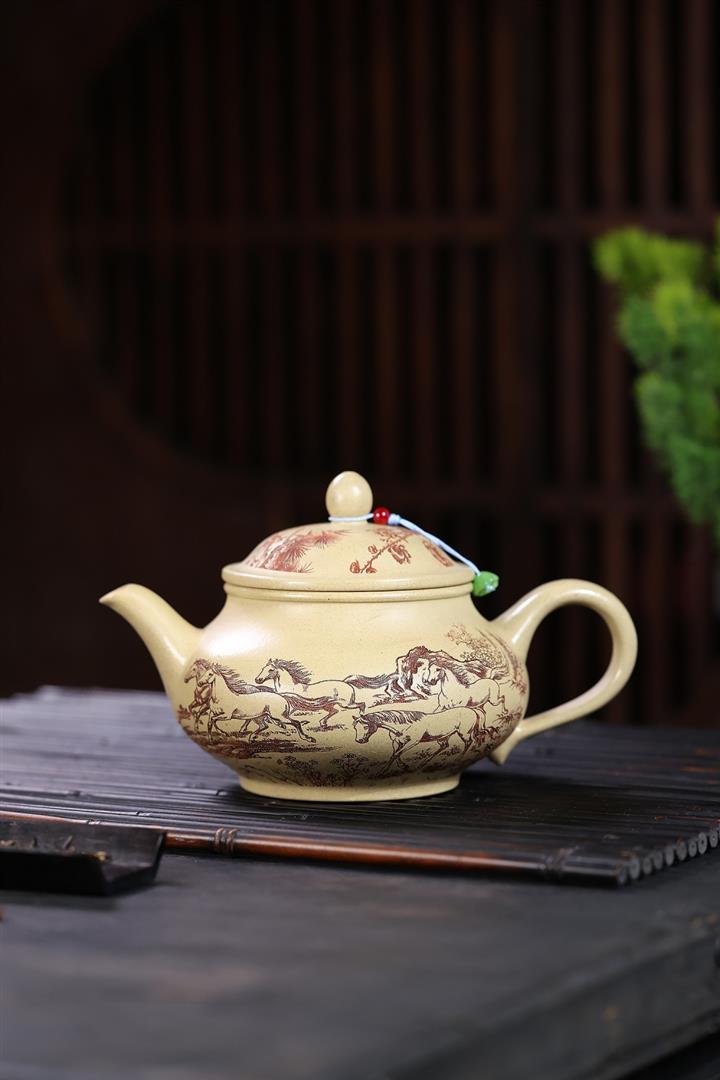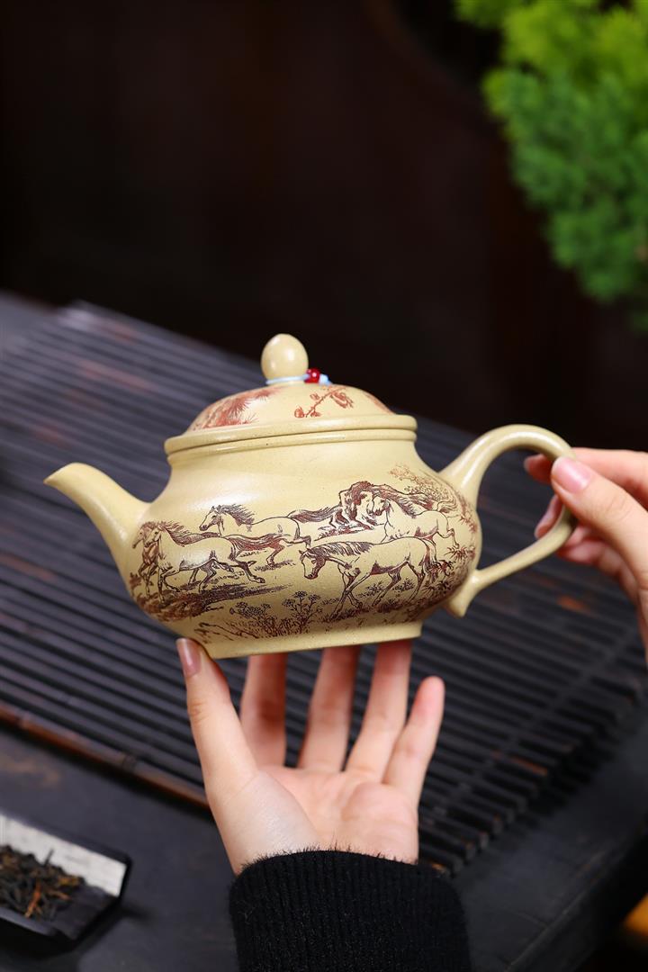 【作品介紹】此款壺形線條流暢,壺把,壺嘴,壺身壹氣呵成栩栩如生,是收藏把玩的好壺,泥料色澤古樸典雅,日久使用,漸露鋒芒,養成變化快,溫潤莊重,用其泡茶,使用的年代久,壺身就溫潤,泡出來的茶湯也就醇郁芳馨。