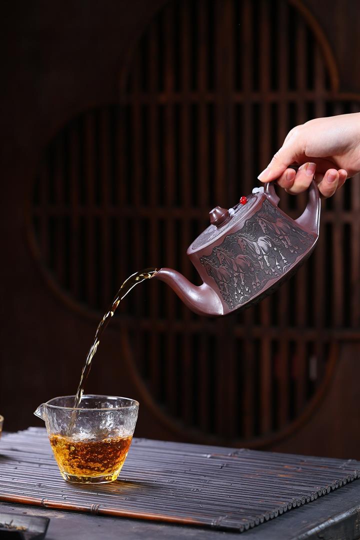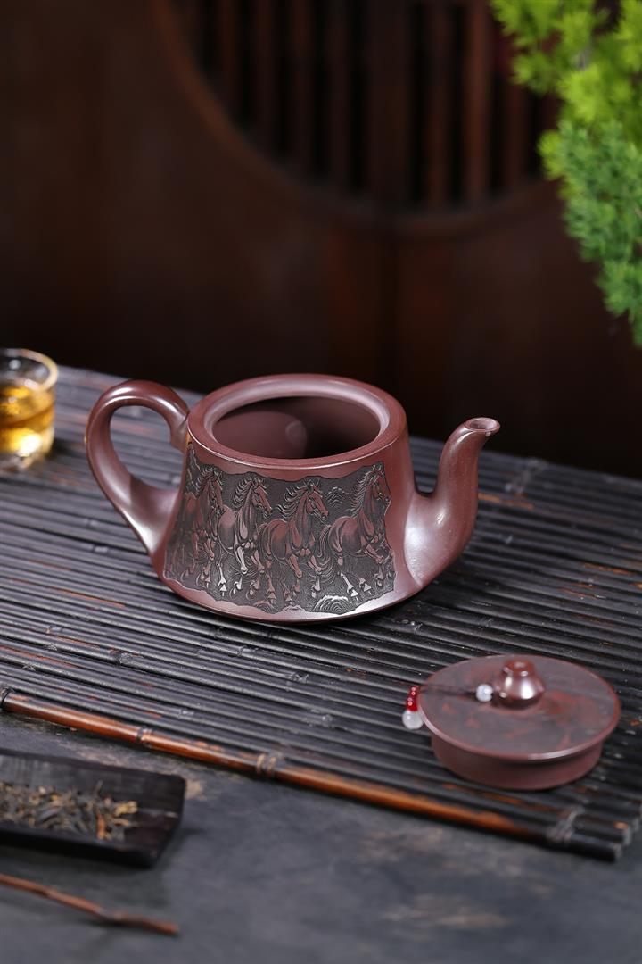 520cc原礦石紅泥八駿曲王泡茶壺POT10146