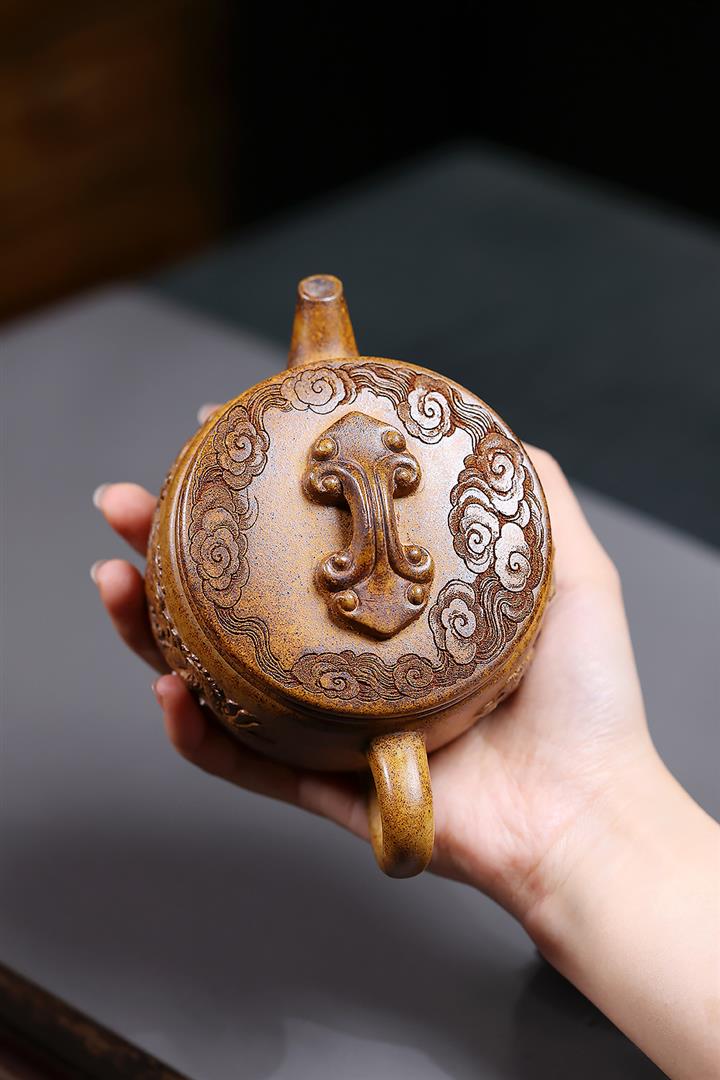 【作品介紹】此款壺形線條流暢,壺把,壺嘴,壺身壹氣呵成栩栩如生,是收藏把玩的好壺,泥料色澤古樸典雅,日久使用,漸露鋒芒,養成變化快,溫潤莊重,用其泡茶,使用的年代久,壺身就溫潤,泡出來的茶湯也就醇郁芳馨。